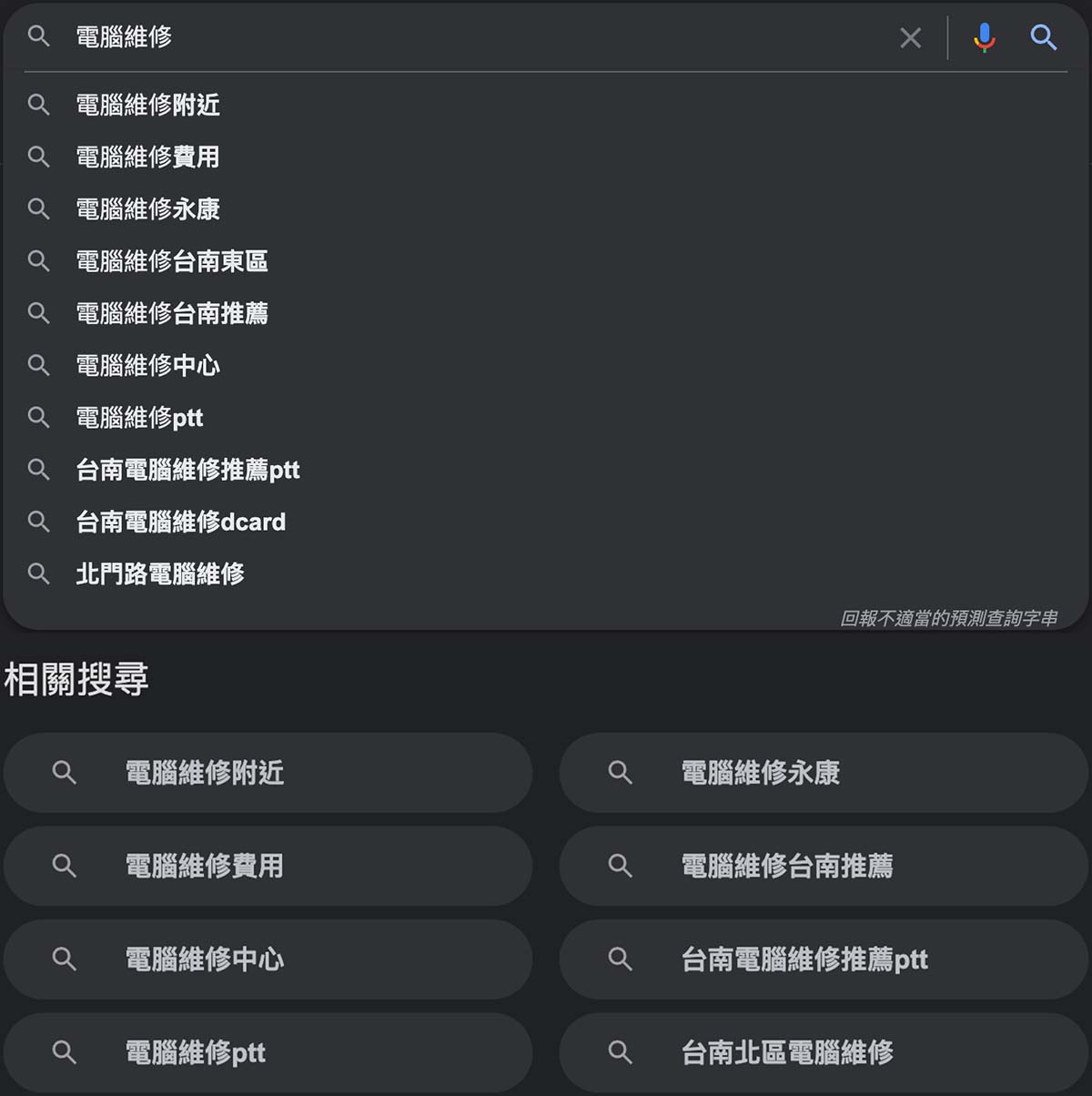 - 參考 Google 搜尋建議