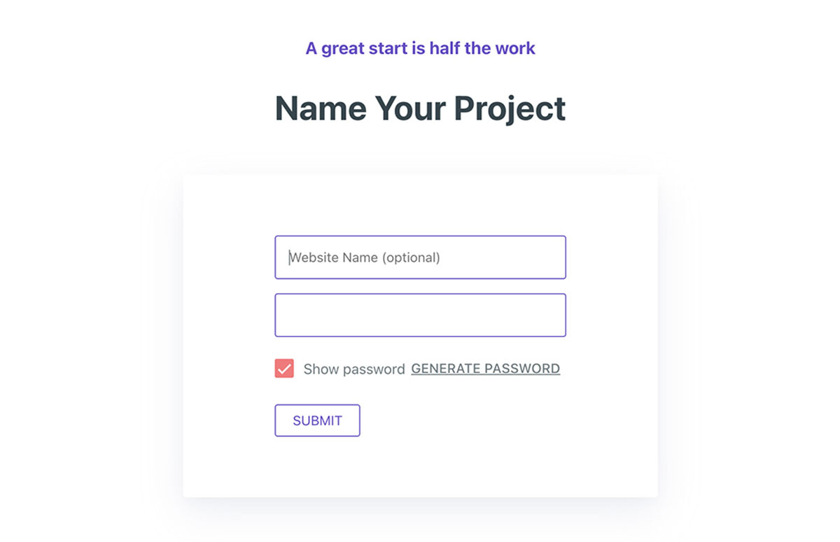 輸入 網站名稱 及 密碼,這個密碼在之後使用 FTP 上傳時會使用到,最後點擊 SUBMIT。